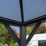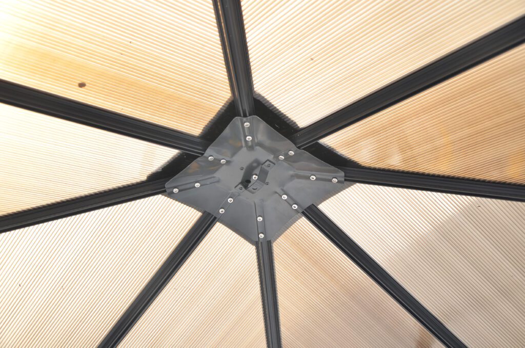 • Features 6mm twin-wall polycarbonate roof panels that provide shelter from sun, rain, and snow — plus built-in UV protection to keep you cool and shaded.