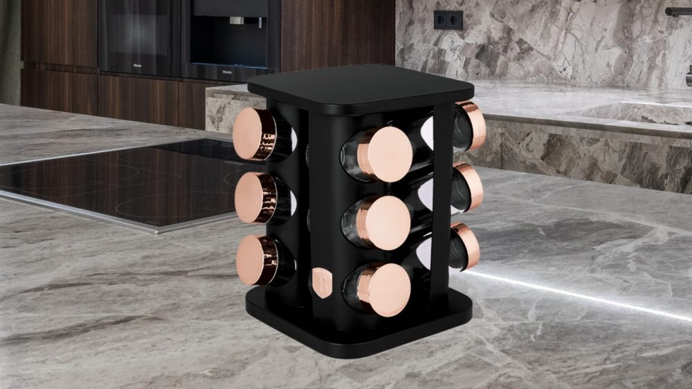 Design and Aesthetics – A Symphony in Black and Rose Gold: The Berlinger Haus BH8559 is not just a spice rack; it’s a statement. The luxurious matte black finish, complemented by exquisite rose gold elements, mirrors the latest in global design trends. This piece is a testament to minimalism, elegance, and first-class quality, designed to captivate and impress.