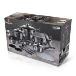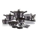 This elegant 18-Piece Cookware Set BH-6887 Carbon Pro Collection is made of forged aluminum thick wall body material and a 3-layer non-stick marble coating.