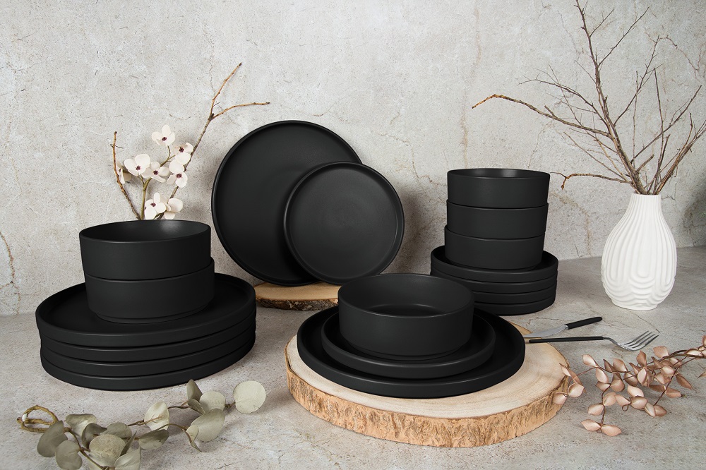 The matte black color of this dinnerware set offers a bold and timeless look that seamlessly integrates into any dining environment. Perfect for those who appreciate the art of presentation, the deep black hue enhances the visual appeal of your meals, making each dish stand out with dramatic effect.