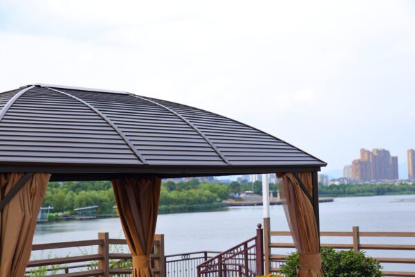 - Upgrade your outdoor space with this premium aluminum gazebo – the perfect blend of modern style, strength, and comfort for all-season enjoyment.
