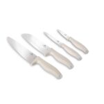Introducing the Berlinger Haus BH 2959 Sahara Knife Set, meticulously crafted from high-quality 3cr13 stainless steel to ensure longevity and consistent performance. This essential set includes a chef knife, a Santoku knife, a utility knife, and a paring knife, all finished in an elegant cream color that brings a touch of sophistication to any kitchen.