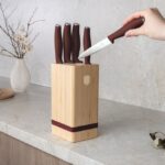 Not only do these knives perform beautifully, but they also add a touch of elegance to your kitchen. The matt bordeaux finish and bamboo stand make this set a visual delight, enhancing your kitchen’s aesthetic.