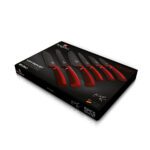 Handcrafted with precision, this knife set is a harmonious blend of design and utility. Fashioned from premium stainless steel, each knife boasts a non-stick black coating ensuring smooth cuts and enduring sharpness. But it’s not all about functionality. The burgundy hue of the knives, coupled with ergonomic soft-touch handles, offers an unparalleled blend of aesthetics and comfort.