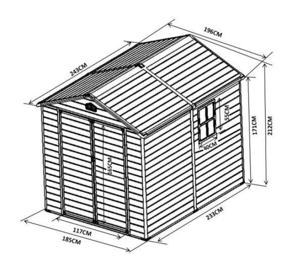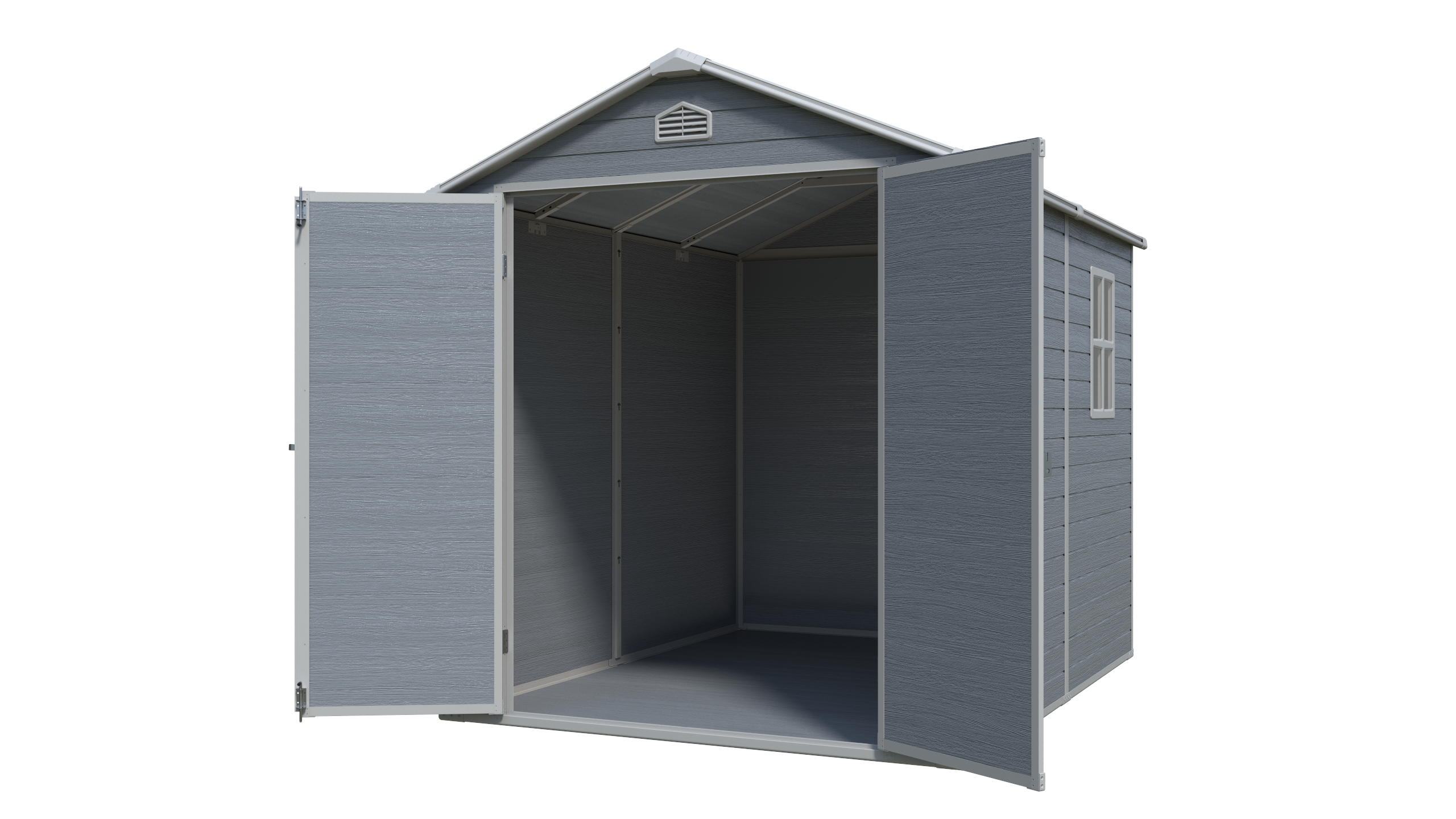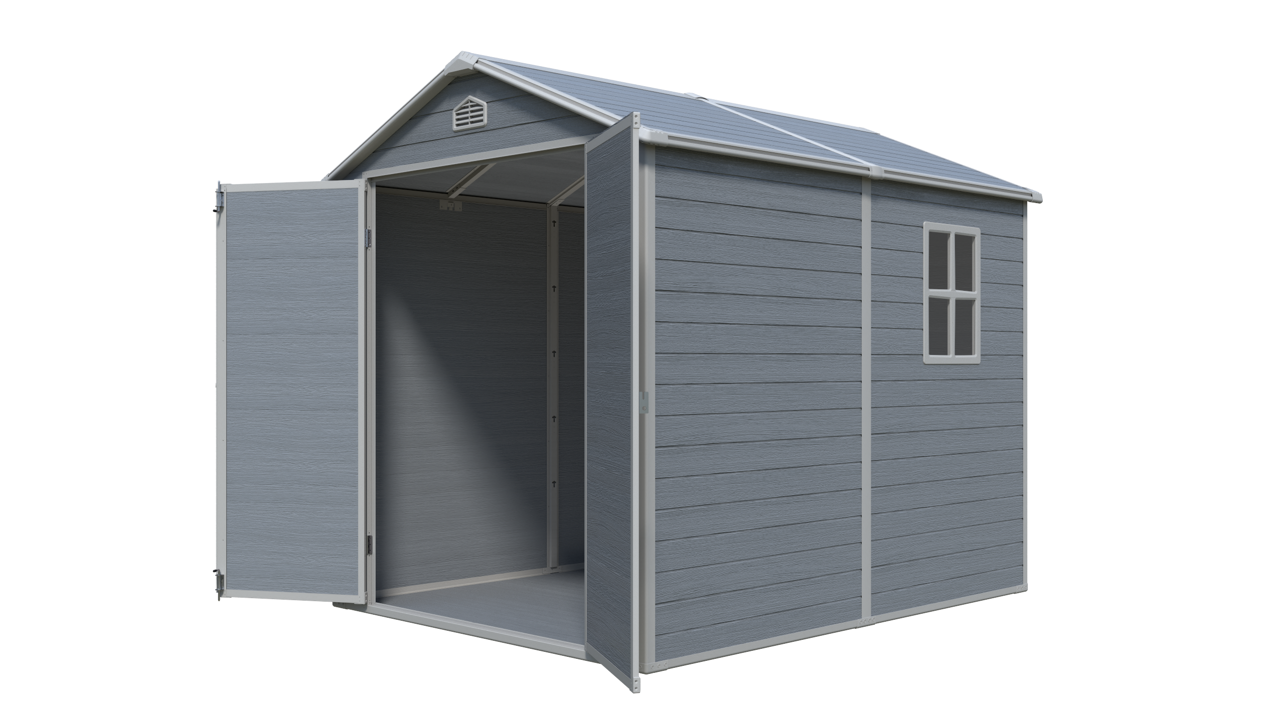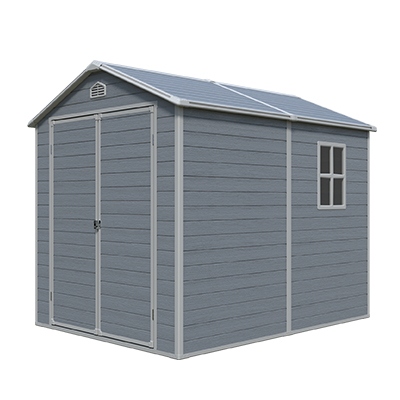 • This stylish yet rugged resin shed blends modern design, long-lasting durability, and practical features — a smart choice for any outdoor storage need.