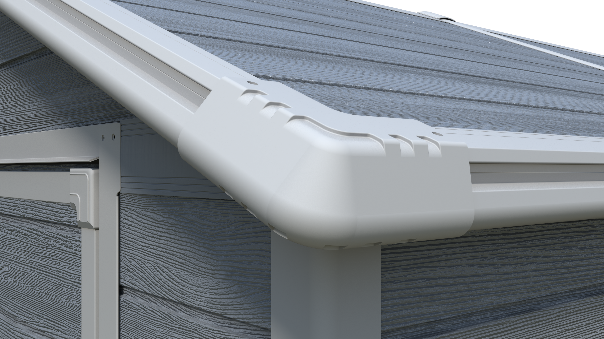 • Rain gutter system with 4 drainage outlets keeps water flowing away