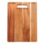 This cutting board is made from eco-friendly acacia wood, a renewable resource that’s both durable and sustainable. Its natural properties make it resistant to water and bacteria, ensuring a hygienic surface for food preparation. Additionally, the PU coating enhances its longevity without compromising its eco-friendliness.