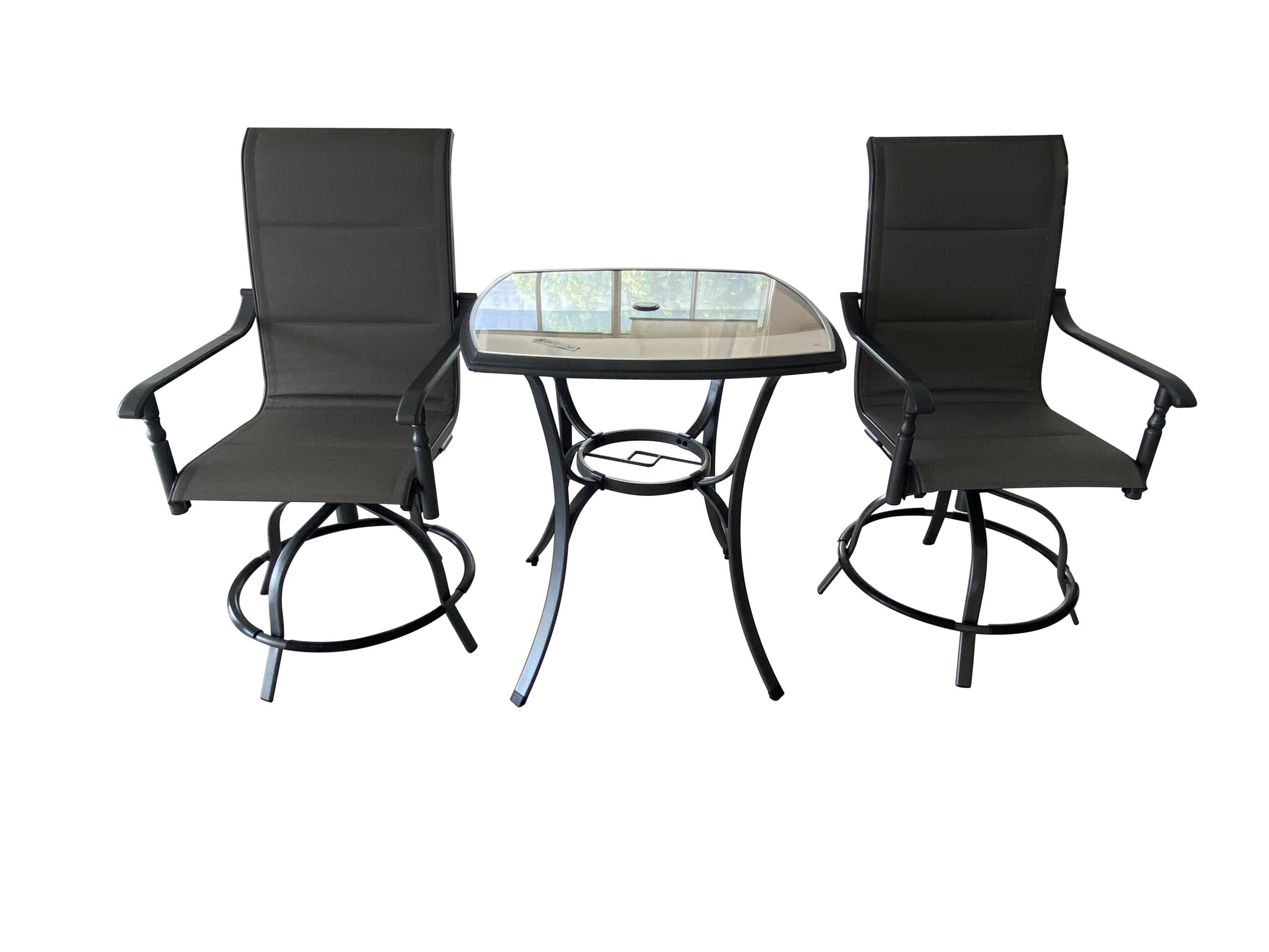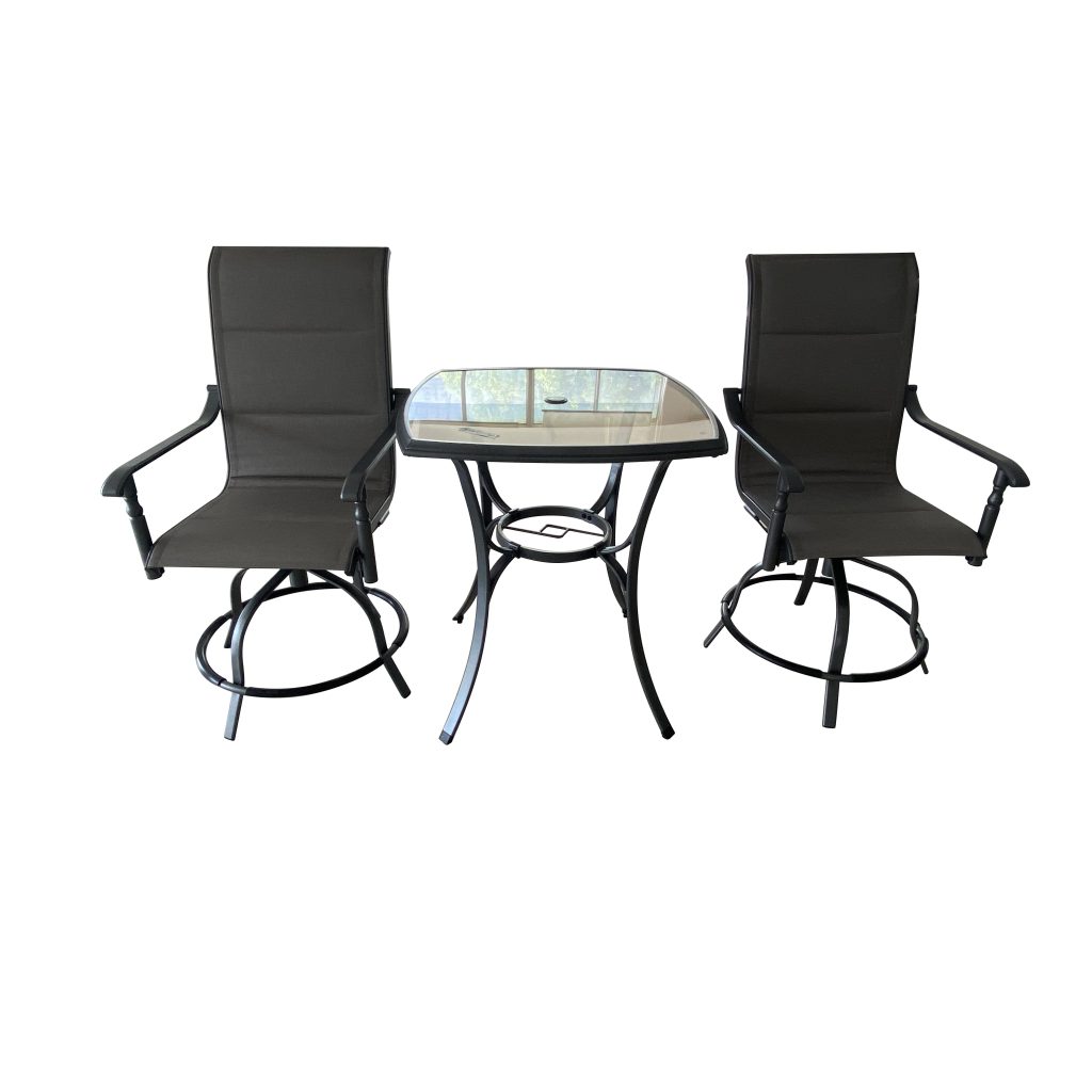 Start your mornings or relax in the evenings with the Ashbury Pewter 3-Piece Coffee Set. Designed with a sturdy steel frame and sleek brown mesh seating, this cozy set brings timeless style and durability to your patio, balcony, or garden.