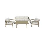 Elevate your outdoor gatherings with the Atlanta 4-Piece Modern Sofa Set, crafted with a sleek aluminium frame in a neutral beige tone. Its contemporary design and plush comfort create an inviting outdoor lounge perfect for any setting.