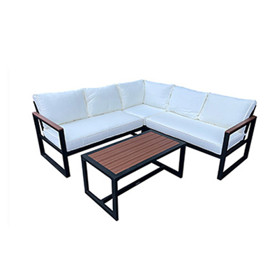 Create a stylish and cozy outdoor lounging space with the Eco Corner Sofa Set. Featuring a sleek aluminium frame with warm brown accents and plush white cushions, this modern design is ideal for patios, decks, or garden spaces.