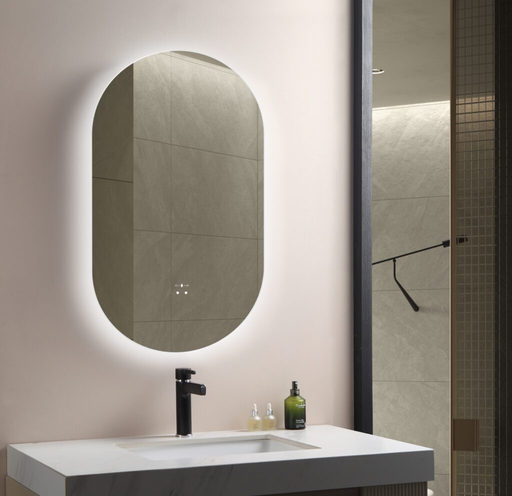 LED bathroom mirror, anti-fog mirror, frameless LED mirror, backlit bathroom mirror, sensor touch mirror, modern bathroom decor, vanity mirror with lights