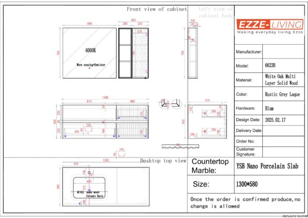 - Functional Side Cabinet: Additional wall-mounted side cabinet (450×750mm) provides extra open shelving and hidden storage, blending form and utility.