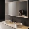 • Integrated Smart Lighting: LED-lit mirror cabinet brightens the space while providing discreet shelving.