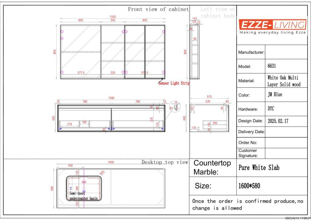 - Dimensions (Vanity): L160 × W58 × H40 cm