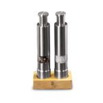 🌿 A Symphony of Style and Strength: Encased in a sleek stainless steel body, these grinders are not only robust but also exude a contemporary elegance. Accompanied by a bamboo stand, they seamlessly blend into any kitchen décor, adding a touch of modern sophistication.