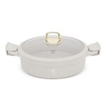 The Berlinger Haus Shallow Pot BH7785 in Sahara cream combines practicality with elegance, making it ideal for cooking stews, sauces, and one-pan meals. Crafted from cast aluminum with a triple-layer titanPro non-stick coating, this pot provides reliable performance and stylish design for everyday cooking.