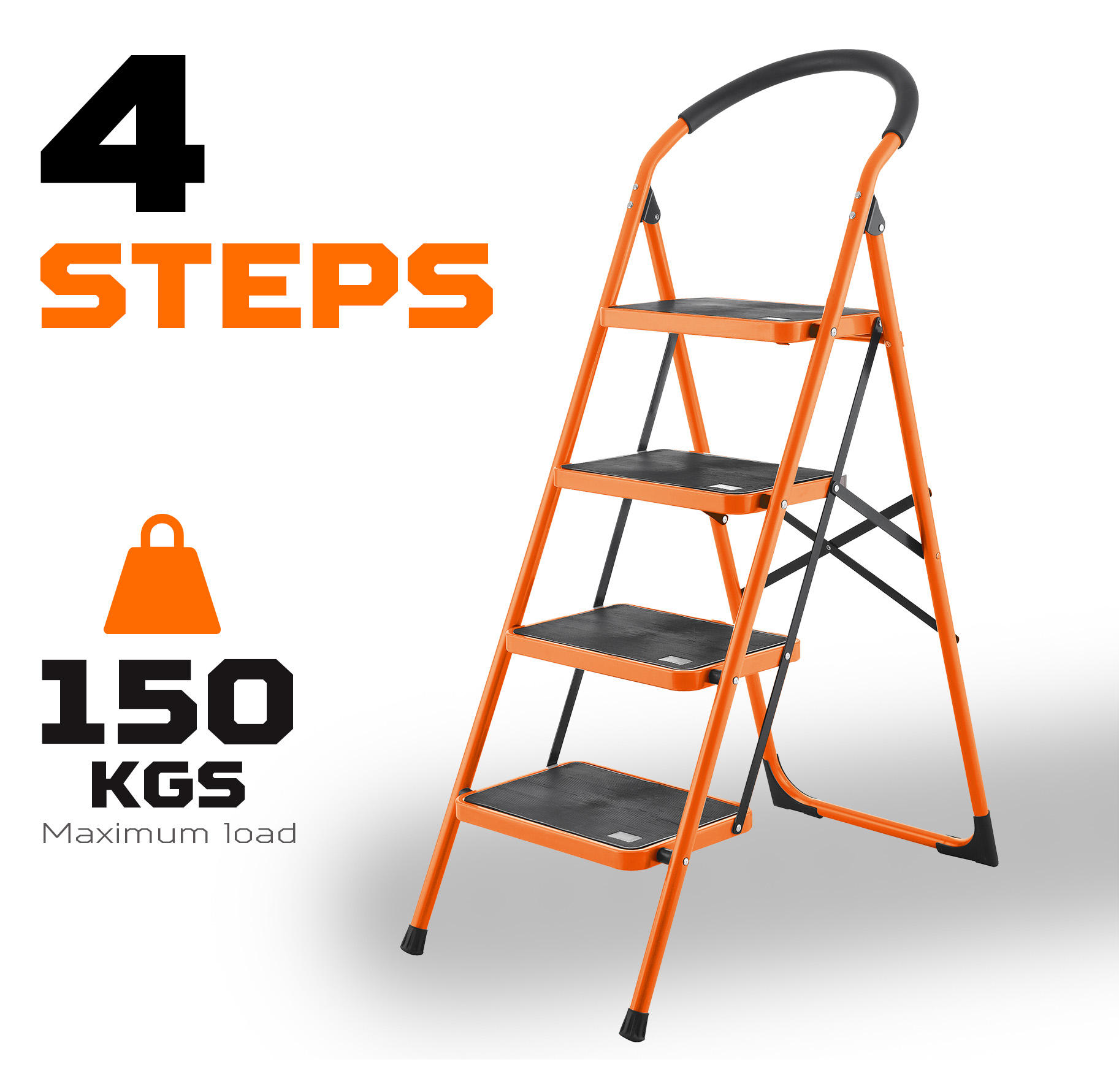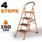 4 steps Material:steel Maxium load :150kgs Step size: 380x260mm Open Size: 495x845x1170mm Folding Size: 490x60x1470mm Packing : color paper with plastic bag