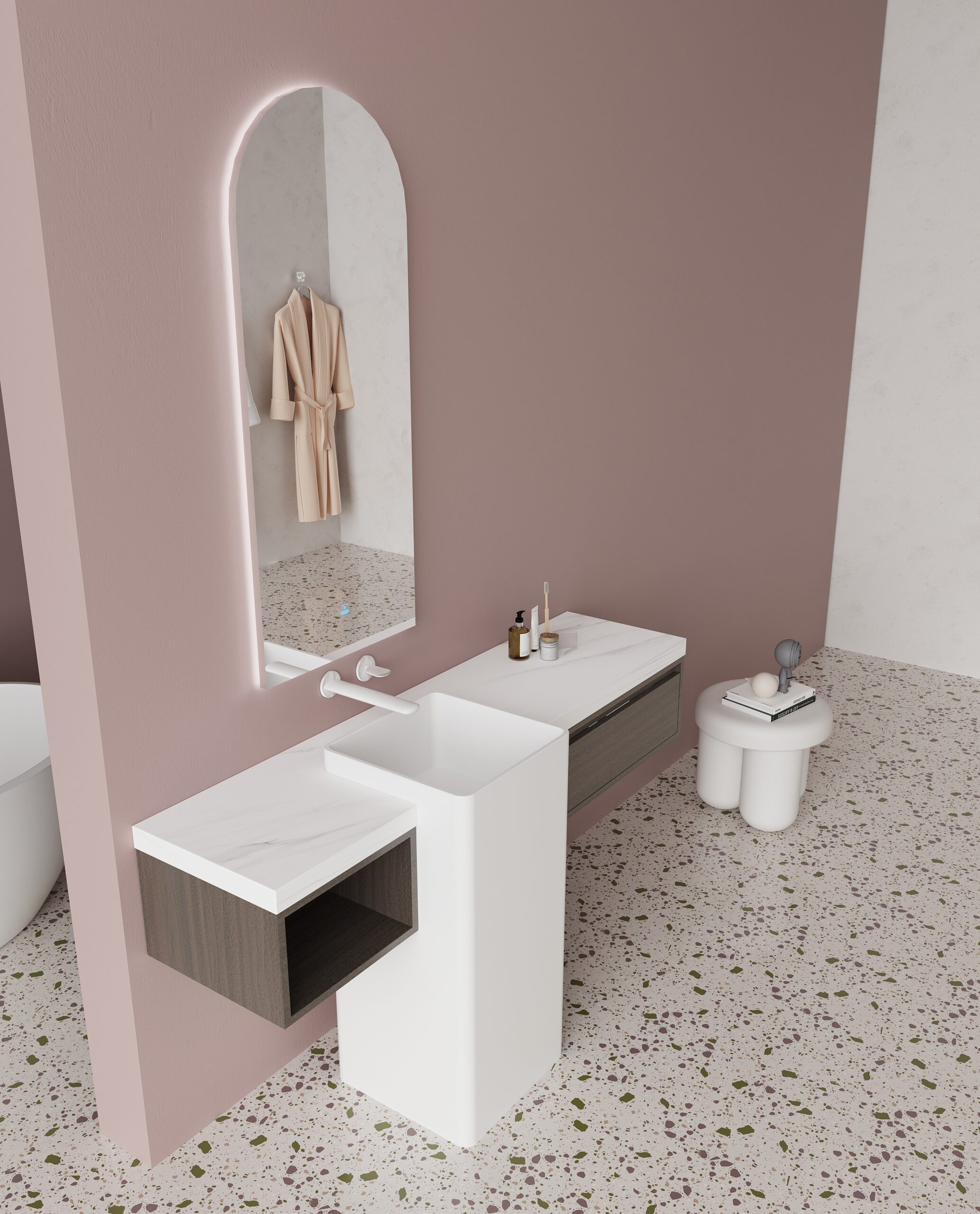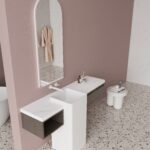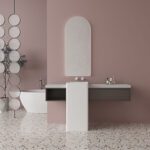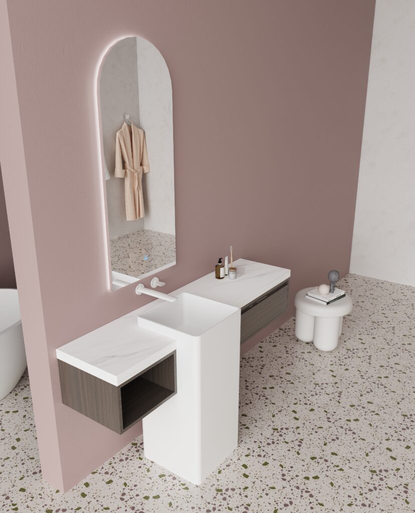 • Sculptural Basin: Unique floor-standing basin (400 × 370 mm) acts as a sculptural centerpiece, enhancing the space’s verticality.