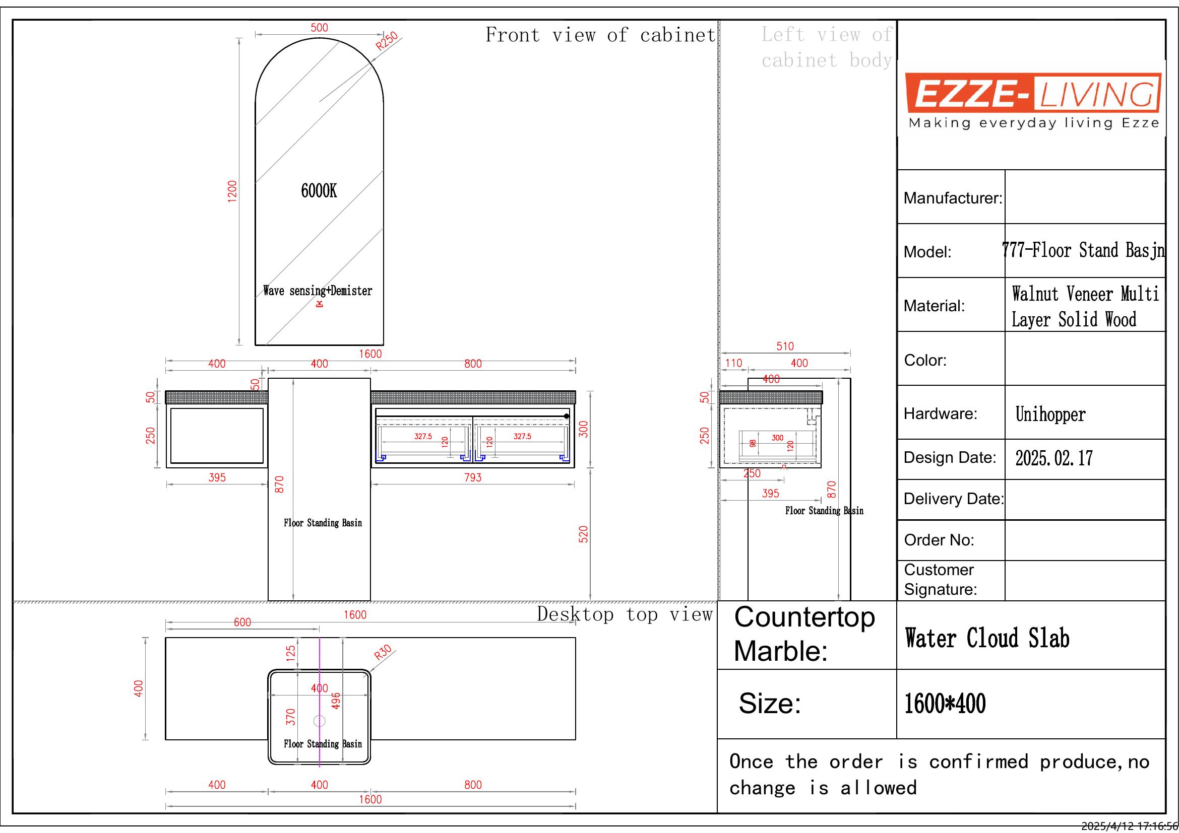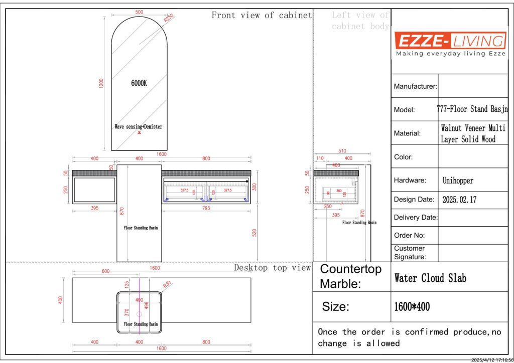 • Dimensions (Vanity): L1324 × W64 × H35 cm
